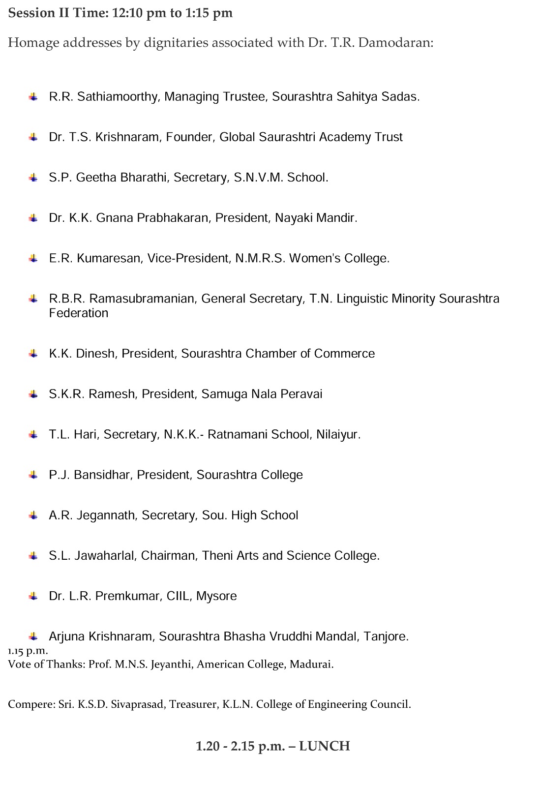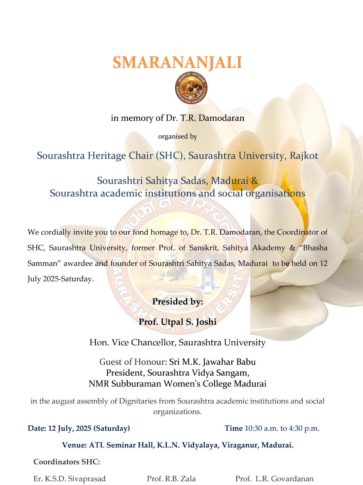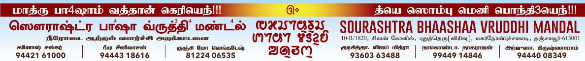 Sponsored by Saurashtra Bhasha Virudyi Mandal, Tanjore.